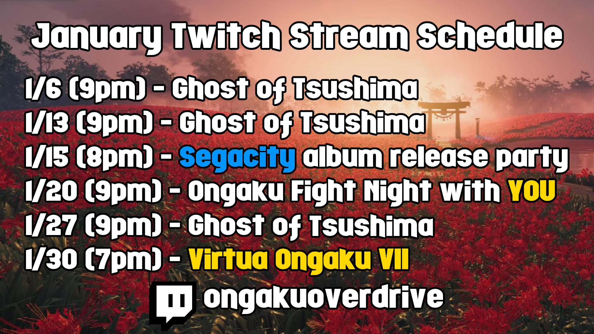 Twitch will be a big part of what we do, so here is our schedule for the month oh January!
